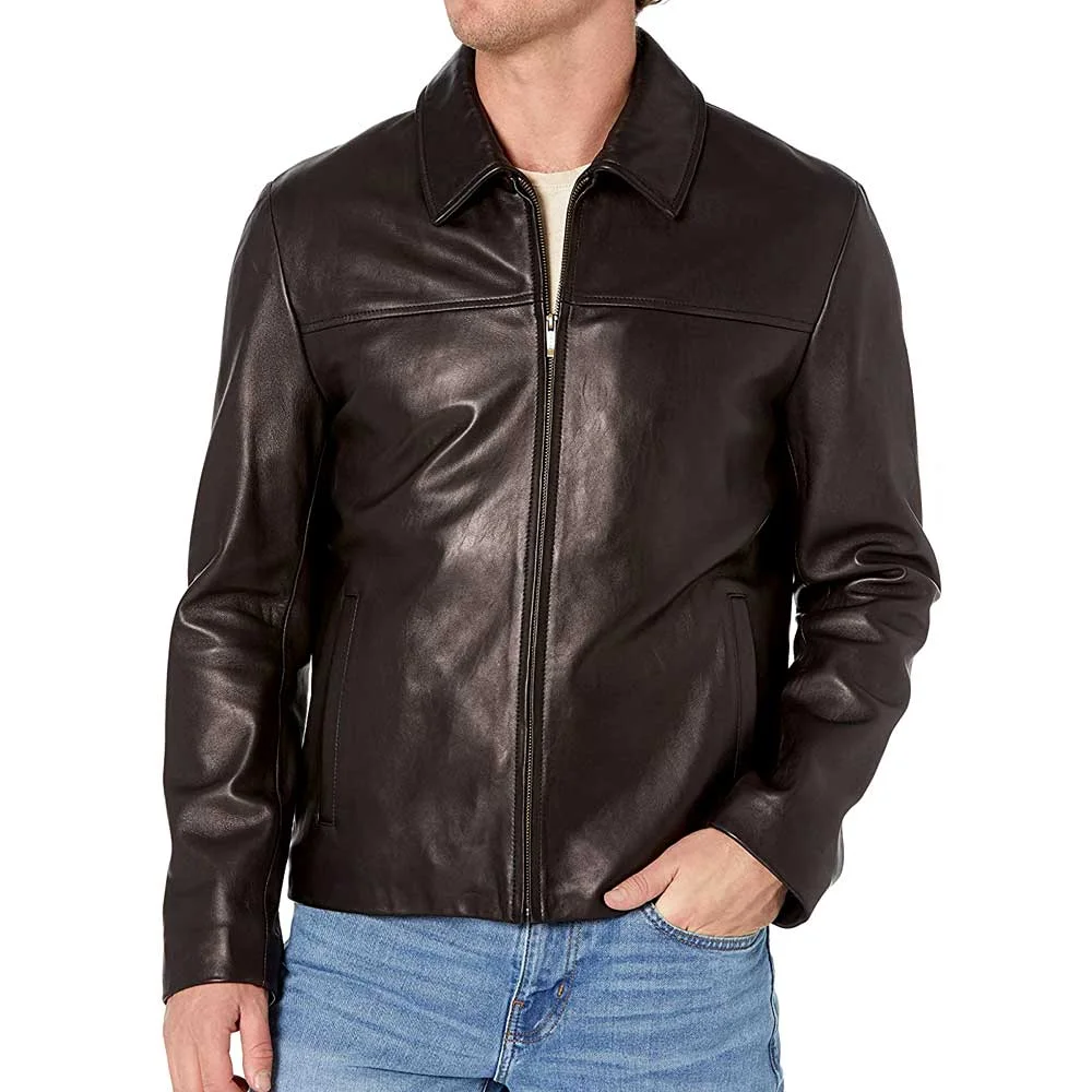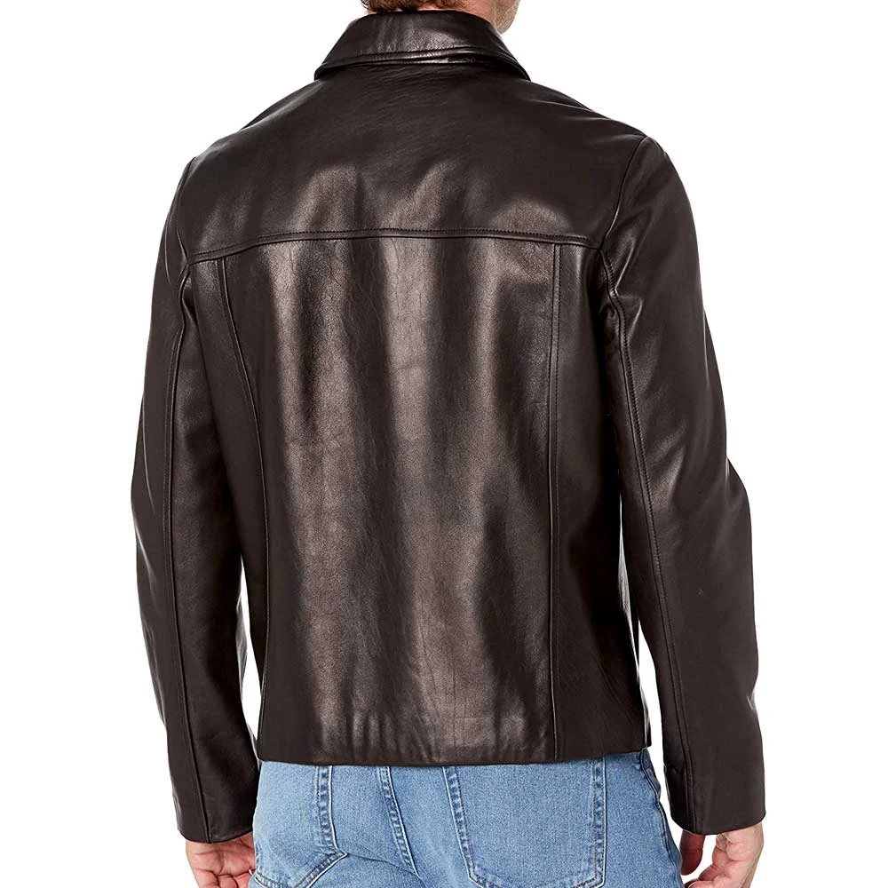 Black Leather Jacket With Collar Men’s – Lampskin Jacket by VogueHide
