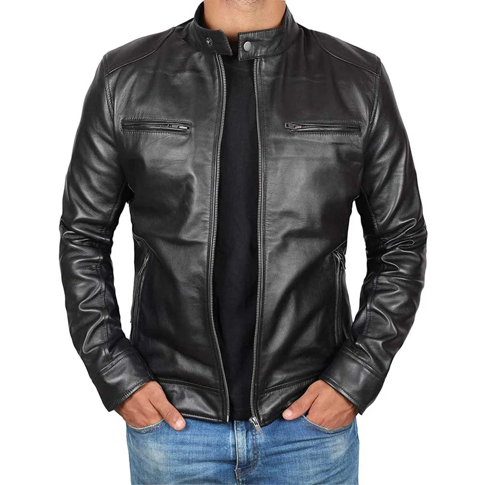 Dodge Black Fitted Real Leather Biker Jacket Men’s by VogueHide
