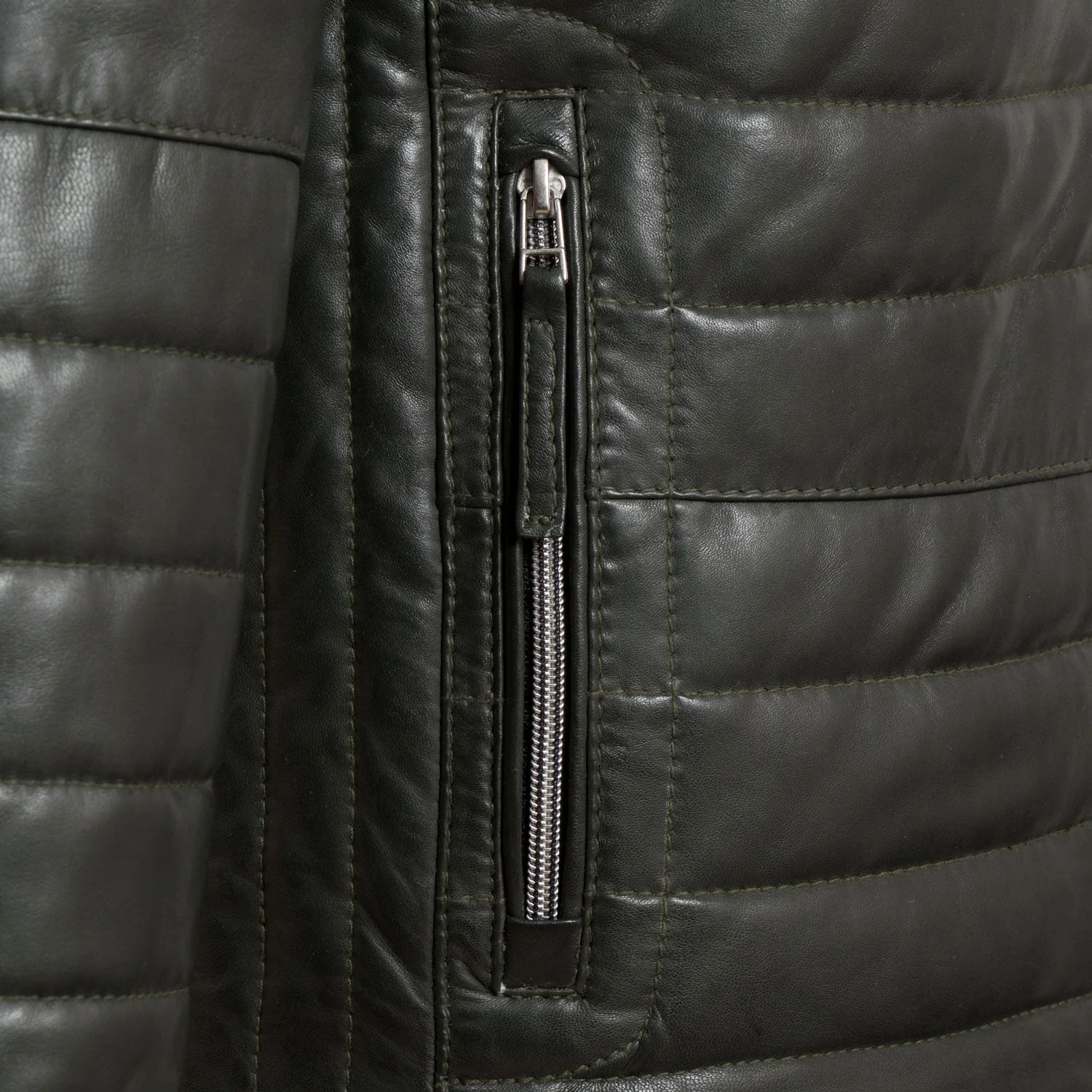 Roman Men’s Olive Puffer Leather Jacket by VogueHide